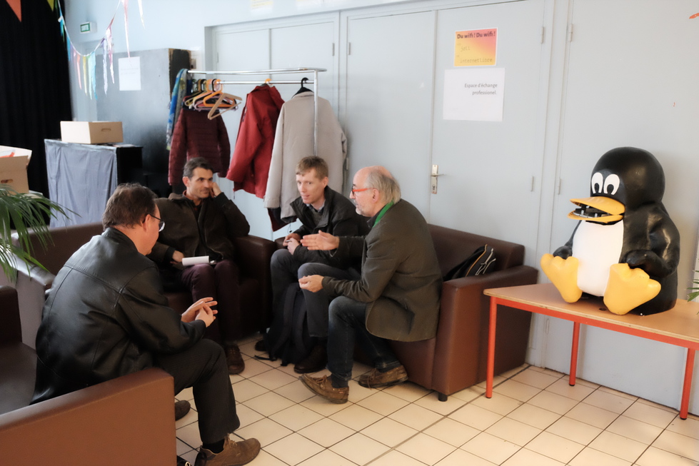 En 1999, une journée originale. (À moins que ce soit à l’automne 1998) nous avons organisé la Journée du Libre la plus originale: ça se passait à Villeurbanne, dans les locaux d’une boîte de rock alternatif: le Pezner, cours Tolstoï. Les locaux, peints en noir laqué étaient décorés de circuits imprimés, ce qui faisait bien un vague lien avec l’informatique. C’était assez amusant de voir arriver les cadres en costume dans ce décor. Ce fut une manifestation de petit format, mais avec pas mal de visiteurs, bien réussie. Forts du succès de cette manifestation, les premières JdLL (mais avait-on déjà choisi le nom ?) ont été organisées au printemps 1999, toujours dans le cadre universitaire à la Doua. Nous avons été bien trop optimistes : il n’y a eu personne ou presque (enfin, seulement les quelques dizaines de membres de l’ALDIL), et ça se passait dans le très grand amphithéâtre Astrée. Les sponsors ont du coup gentiment oublié de payer leur contribution (il y avait quelques industriels ). Parmi les orateurs, il y avait J-C. Delépine (installation de Debian en direct: il ne faut jamais faire ça ! ), Rémy Card et le père de N. Thiéry. Cette journée était très mal organisée: pas de publicité ou si peu, et un coté par trop universitaire probablement. En tout cas les finances de l’ALDIL ont passé un sale quart d’heure (il y avait des billets de train et des nuits d’hôtel à payer).
